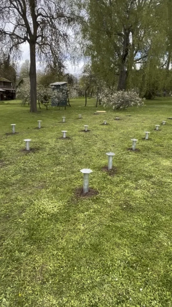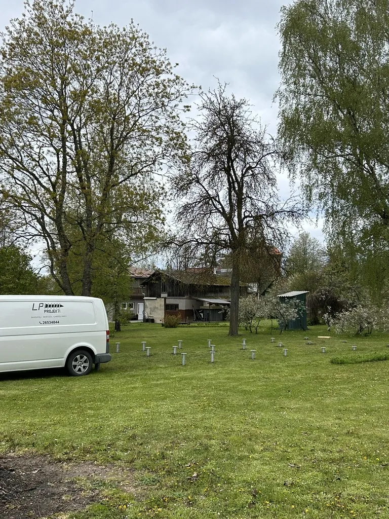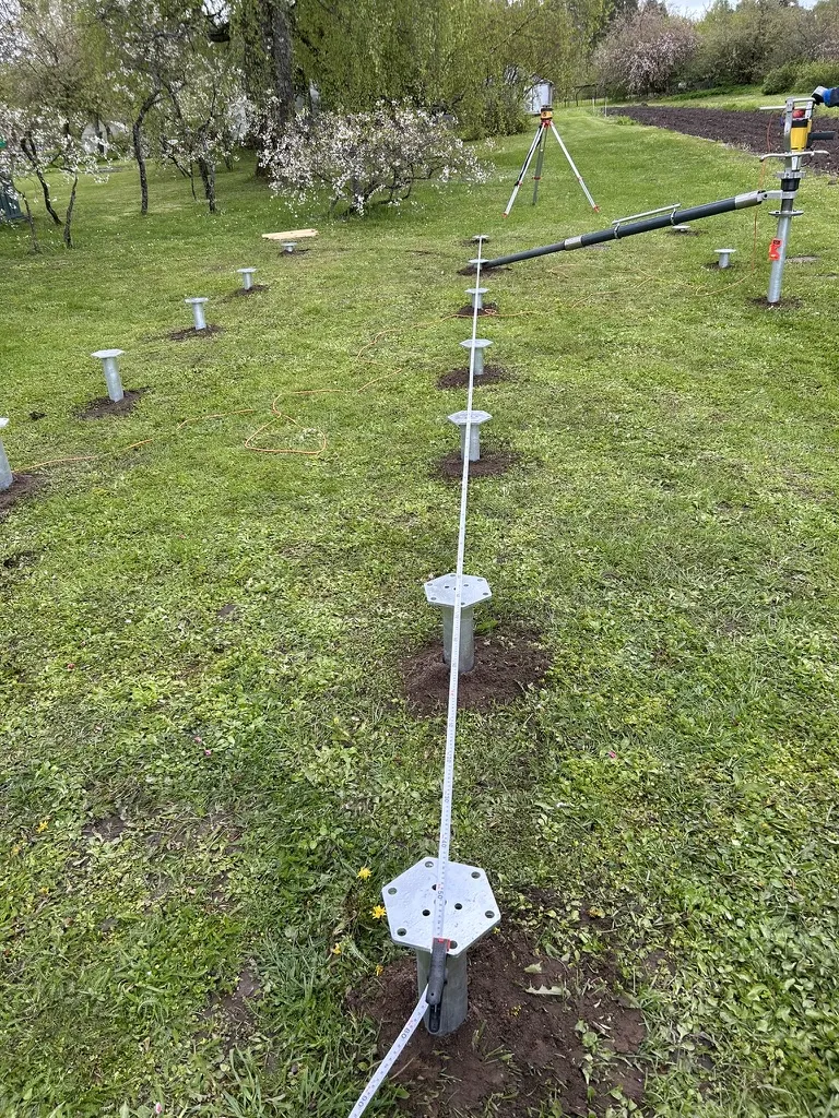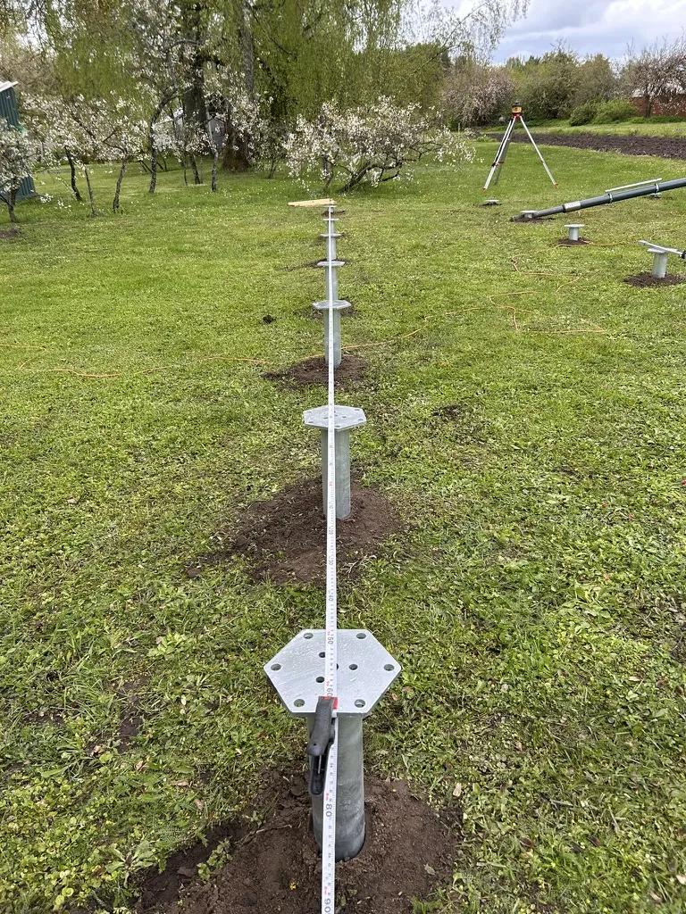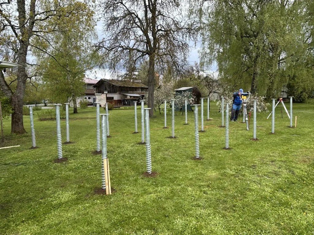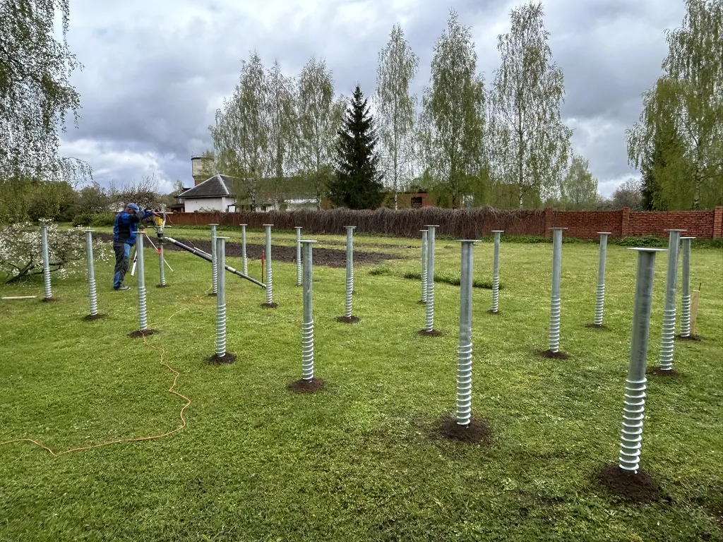 The company provided us with a foundation drawing showing the layout of the screw piles. The house measured 8.7 x 4.3 m. The screw piles were planned in 3 rows of 7 each, making a total of 21 piles – 2000 mm in length. We prepared a quote and agreed on the installation date.